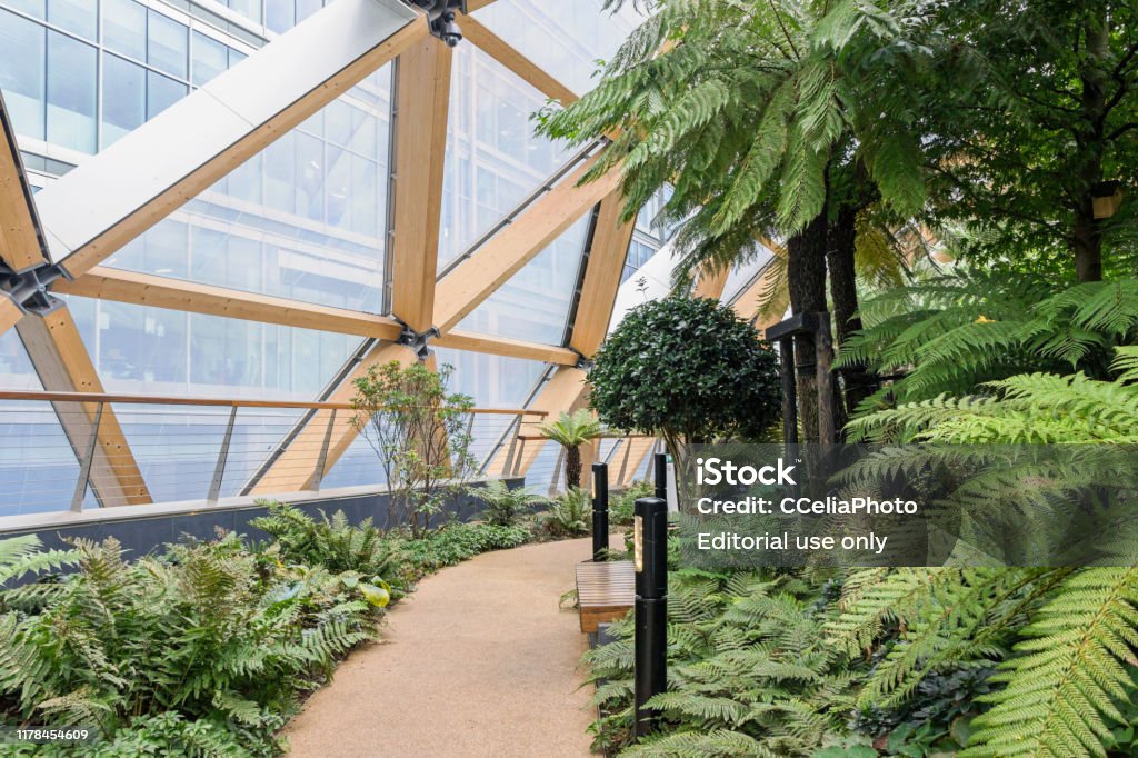 ロンドンのクロスレール・プレイスの屋上庭園Premium写真。