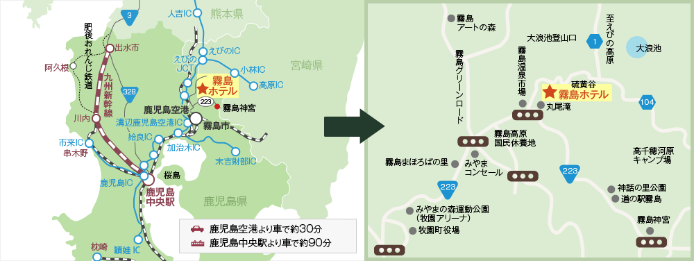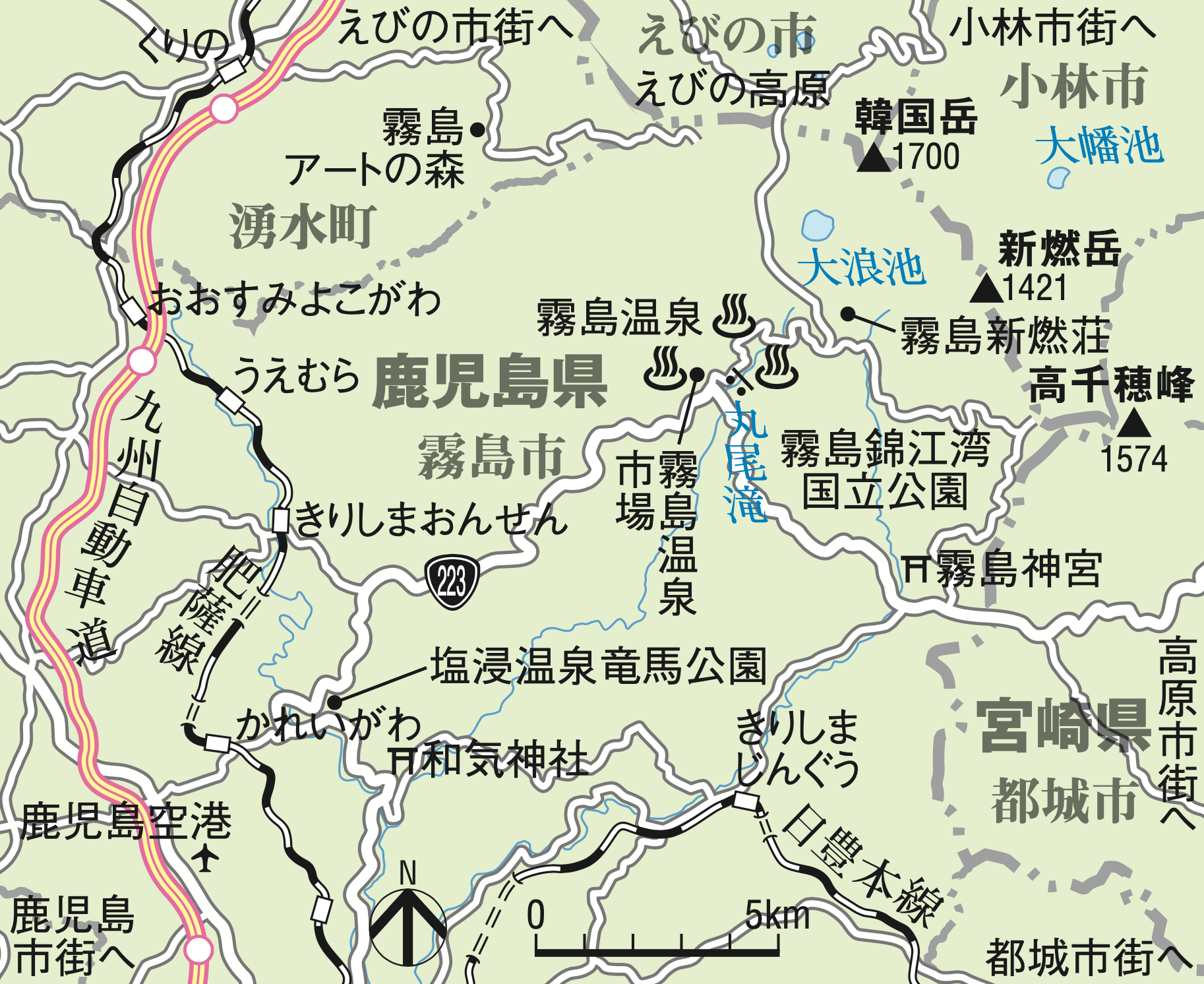 ☆霧島連山・新燃岳周辺広域地図☆ 全室露天風呂付き客室が人気の宿 優湯庵のお知らせ。