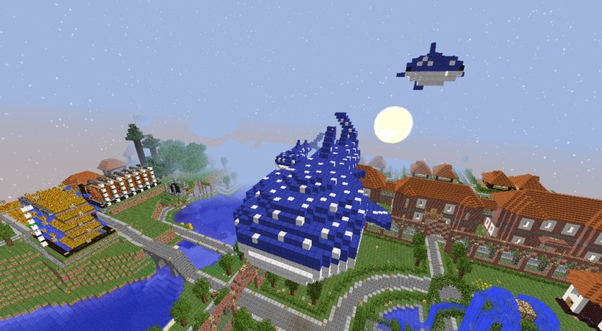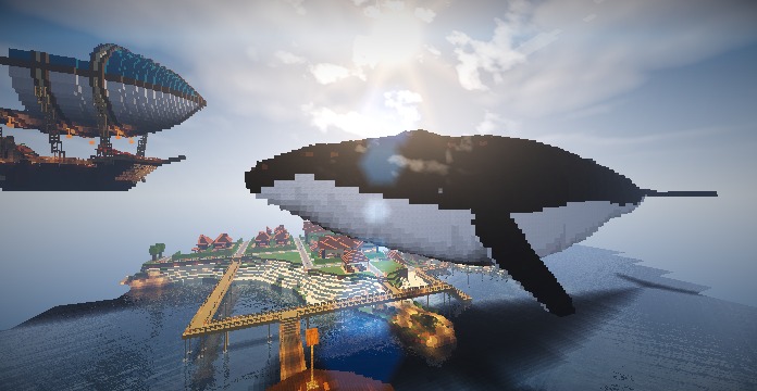 空を泳ぐジンベエザメ マインクラフトししゃものぷっこ村通信。